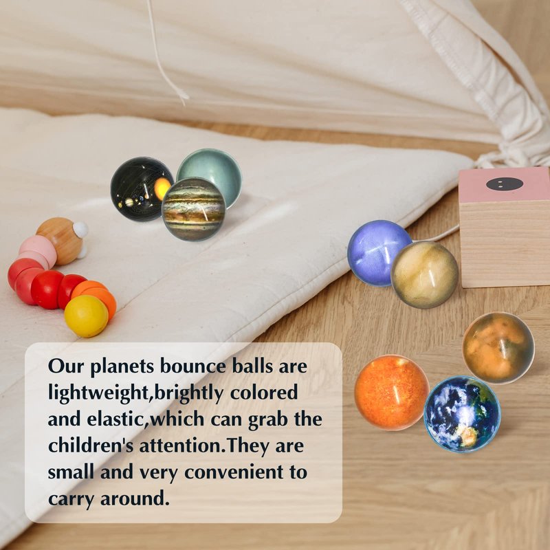 - Features:Our planets bounce balls are lightweight,brightly colored and elastic,which can grab the children's attention.They are small and very convenient to carry around.