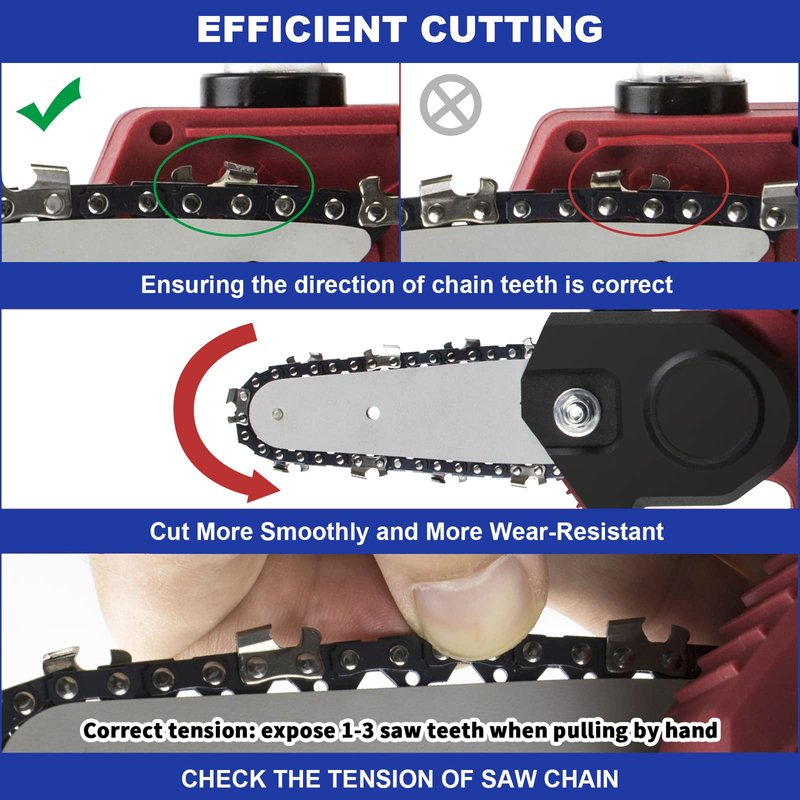 - [ SHARP AND STRONG CHAIN] : Chain is deeply quenched to ensure smooth cutting and optimal lubrication. The service life of the saw chain is longer and smooth, lightweight, wear-resistant, and cuts smoothly.