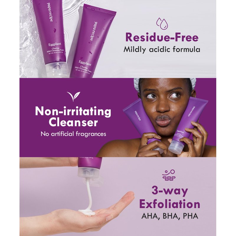 Papa Recipe Eggplant Moisturizing Cleansing Foam for Sensitive, Dehydrated, and Acne-Prone Skin - 2 Pack