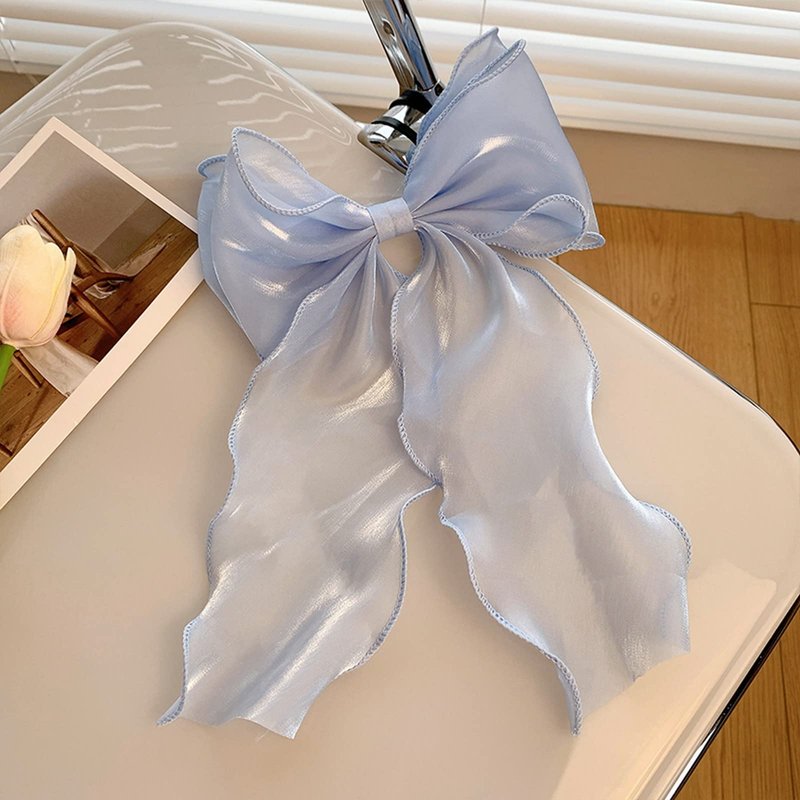 papasgix Hair Bow Clips for Women, Hair Ribbons Big Hair Bow Clips Solid Color Long Silk Ribbon Bow Hair Clip Silk Hair Bows Ribbon for Women Girls (1, Blue)