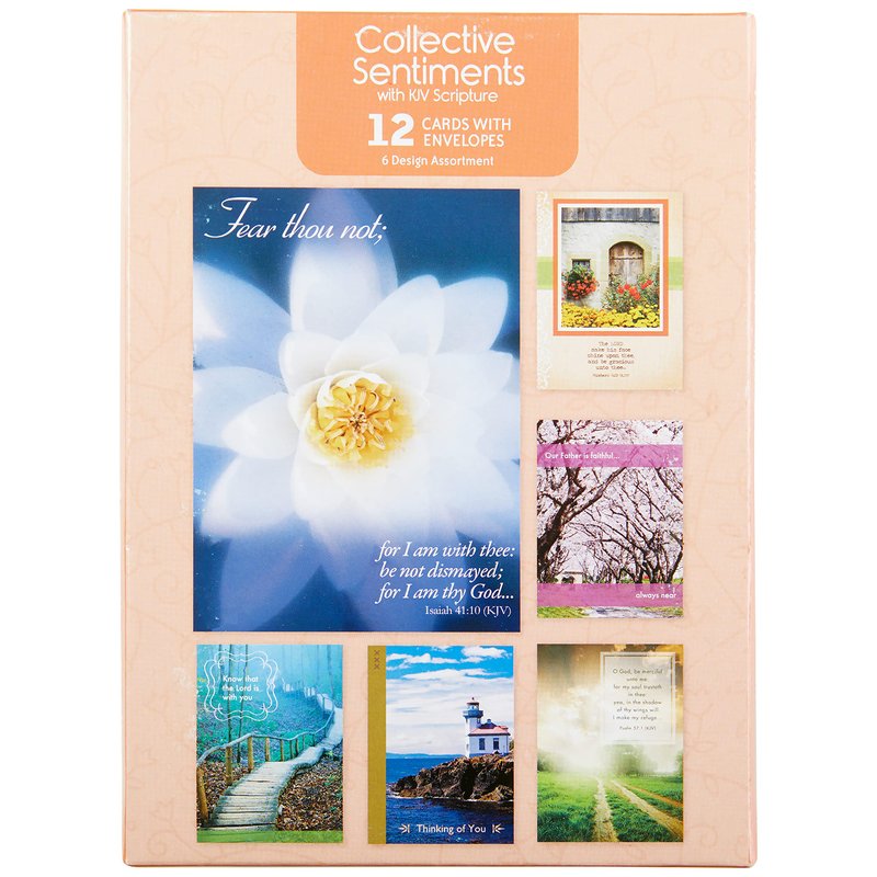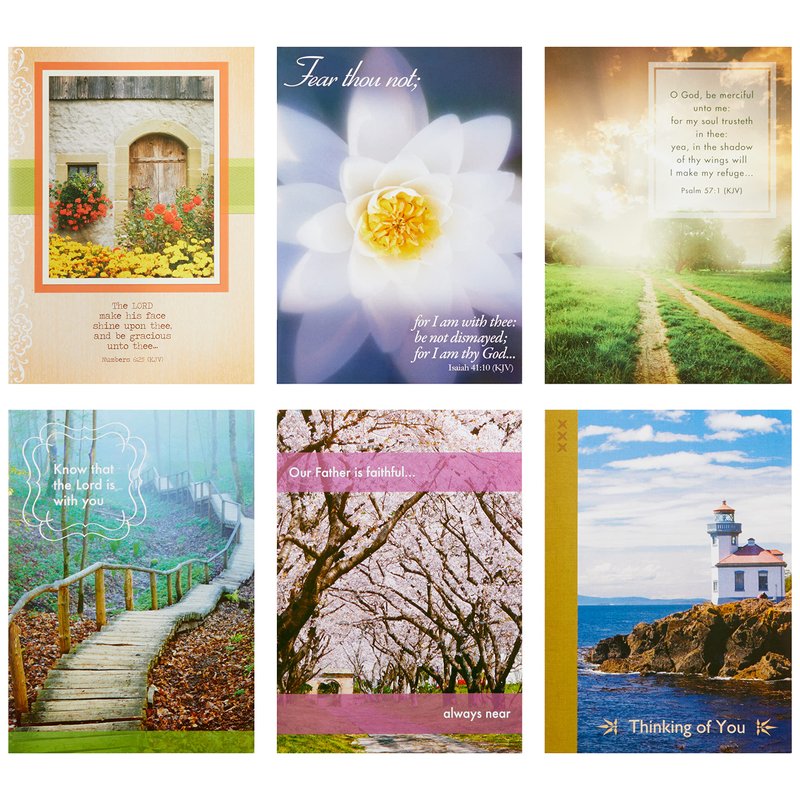 - Religious condolences cards feature 6 unique designs with 6 different sentiments of scripture from the Kings James Bible (2 of each design).