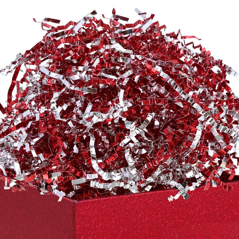 - GLITZ & GLIMMER NEST FOR YOUR GIFTS - Dazzling and Generous Quality of 1 LB Red Silver Gift Wrapping Fillers. Large enough to fill at least 10-15 large gift boxes or baskets. This Tissue Strands Shred is a versatile party favor decoration supply for occasions like Mother's Day, Birthday, Anniversary, Wedding, Valentine's Day, Easter, Christmas, Thanksgiving, and Housewarming Gifts. Many small businesses use this product to impress customers and elevate retail merchandise presentation.