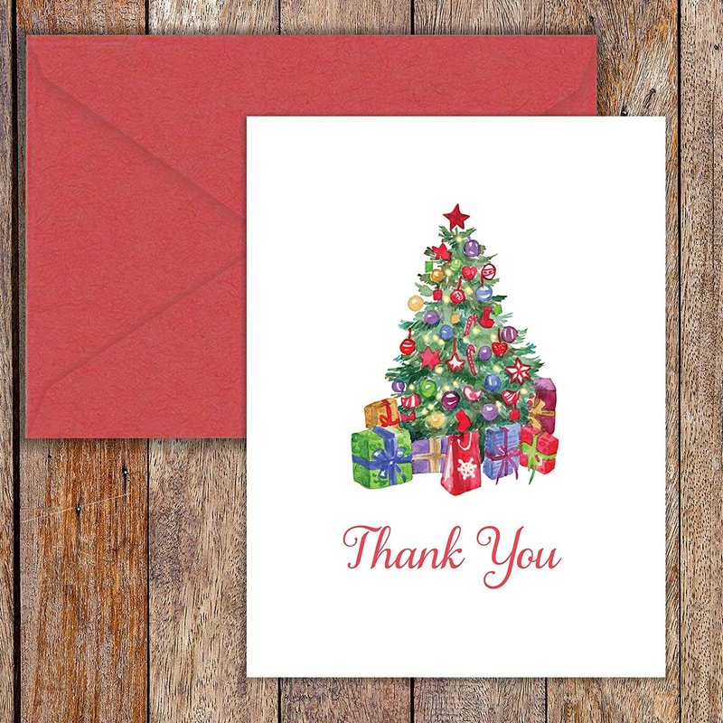 Paper Frenzy Christmas Tree Holiday Thank You Note Cards and Envelopes - 25 pack