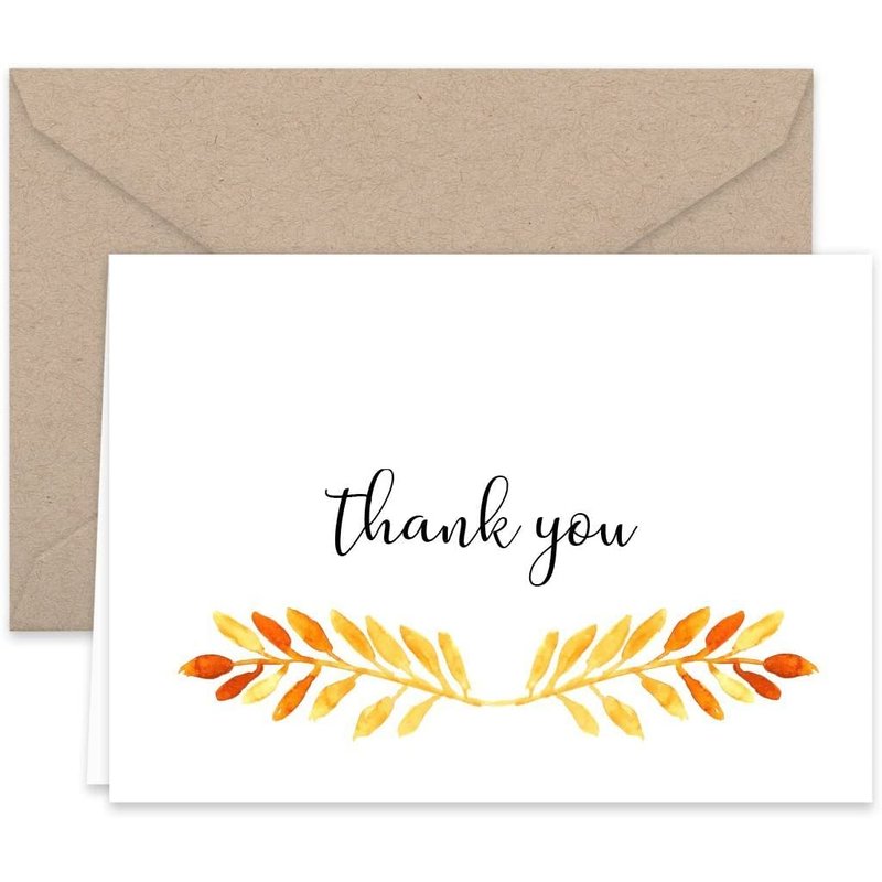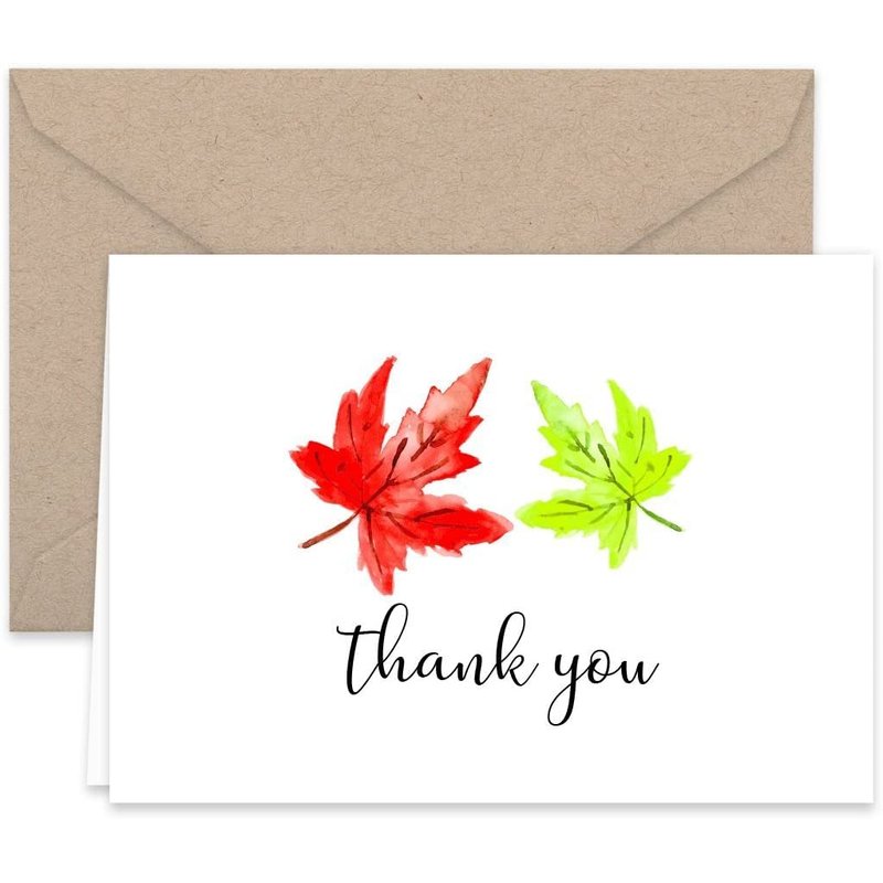 Paper Frenzy Fall Leaves Thank You Note Cards and Kraft Envelopes - 25 pack
