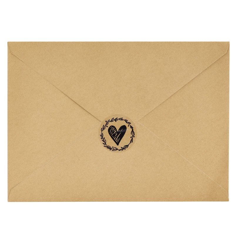 - Romantic Design: The envelope sticker seals feature a transparent background with a black shaded-in heart and olive wreath design that will add a bit of elegance
