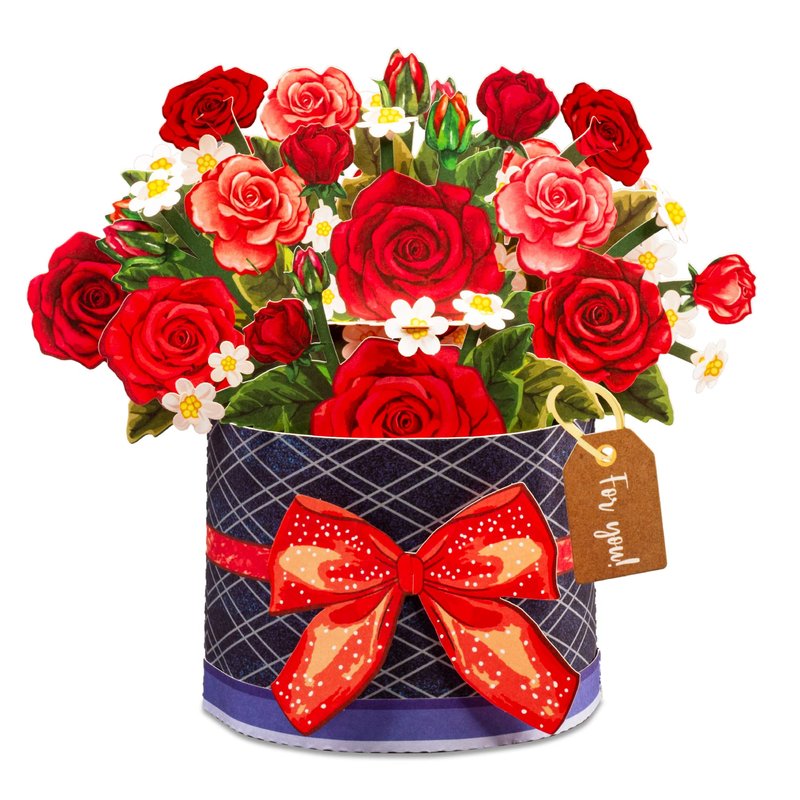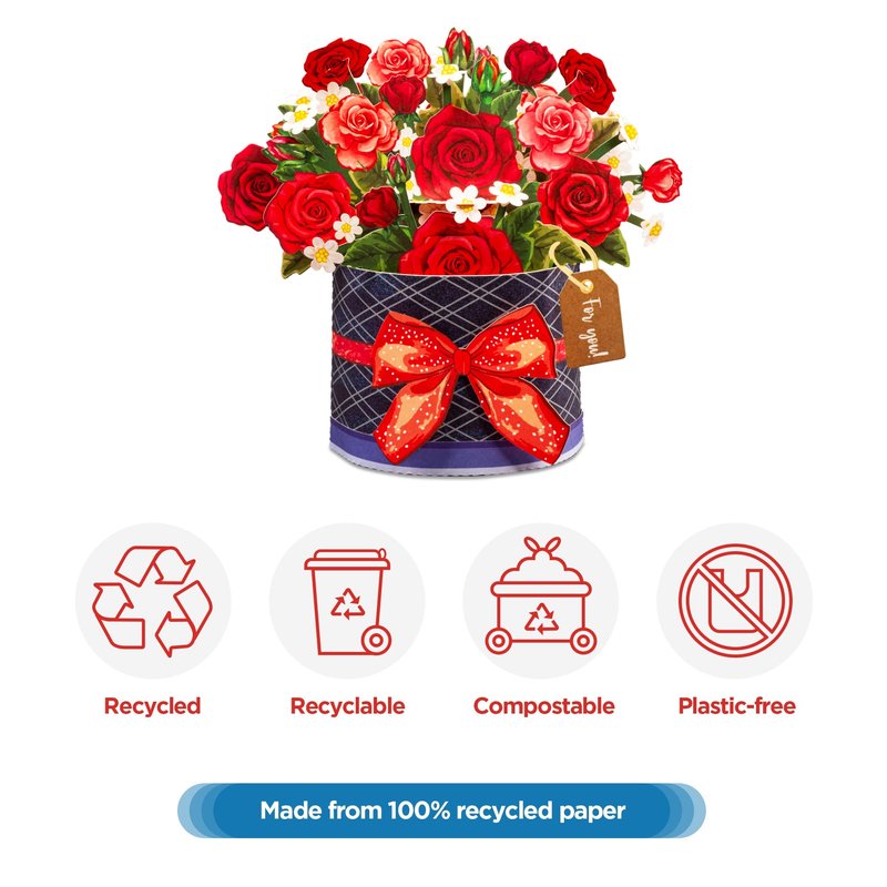 Paper Love Frndly, 3D Box of Roses Pop Up Card, For All Occasion, Mothers Day, Anniversary, Thank You, Just Because -100% Recycled and Eco-Friendly,Handmade, 10 Inch Bouquet