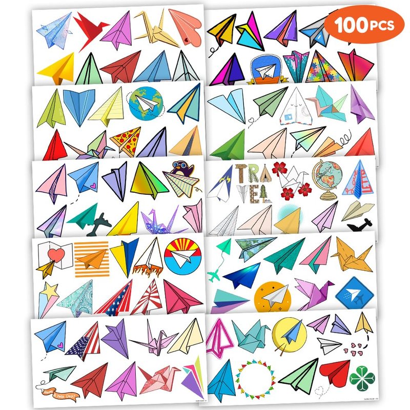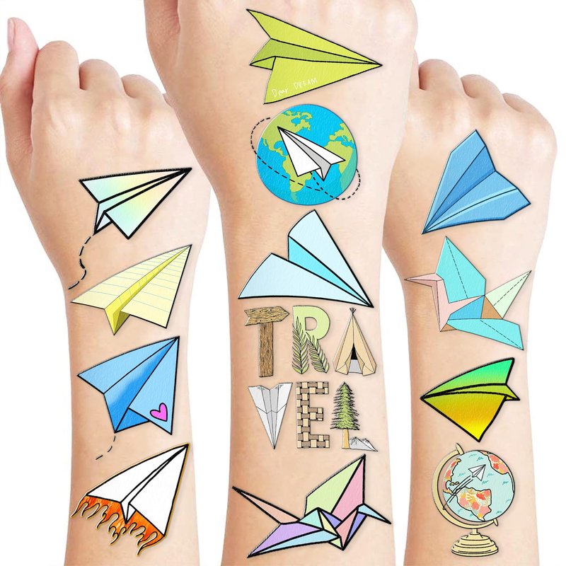 - What You Get: We would like to provide you with 10 sheets tattoos for, including various styles, sufficient in quantities and styles to meet your daily requirement of using and decorating. You can easily use this set of Cute Paper Plane party decorations with this Paper Airplane temporary tattoos and take unique photos to make fond memories. The size of each sheet is 6.1 * 3.1 inches.
