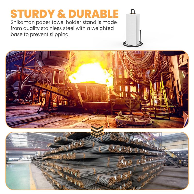 - STURDY & DURABLE: shikaman paper towel holder stand is made from quality stainless steel with a weighted base to prevent slipping.