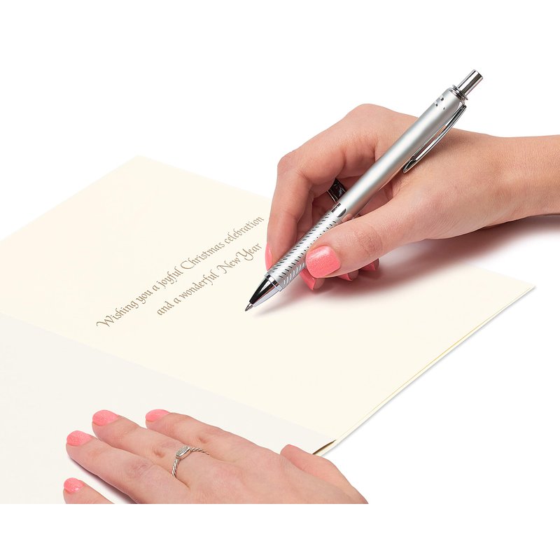 - Papyrus boxed Christmas greeting card set includes 8 cards, 8 white envelopes with gold lining and 8 gold seals. Boxed in protective plastic lid. Cards measure 5 in. x 7 in. Extra postage required.