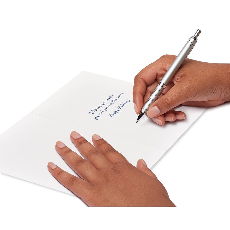 - These festive Christmas cards by Papyrus features a painted winter scene of trees embellished with shimmering glitter. Perfect for sending Christmas cards to friends, family or anyone this holiday season.