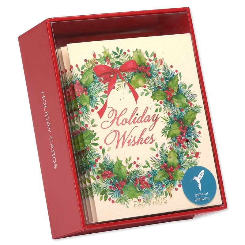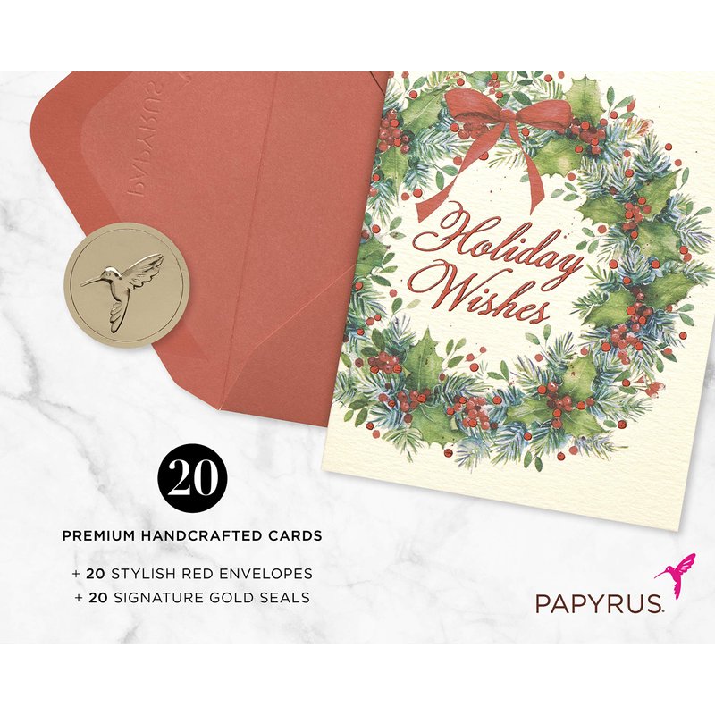 Papyrus Holiday Cards Boxed with Envelopes, Wonderful Holiday, Wreath (20-Count)