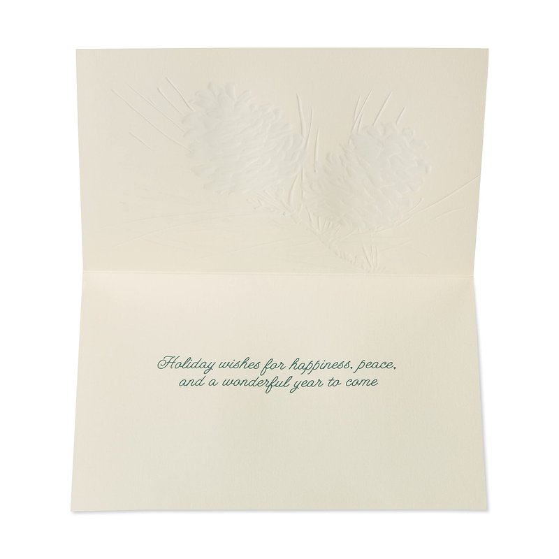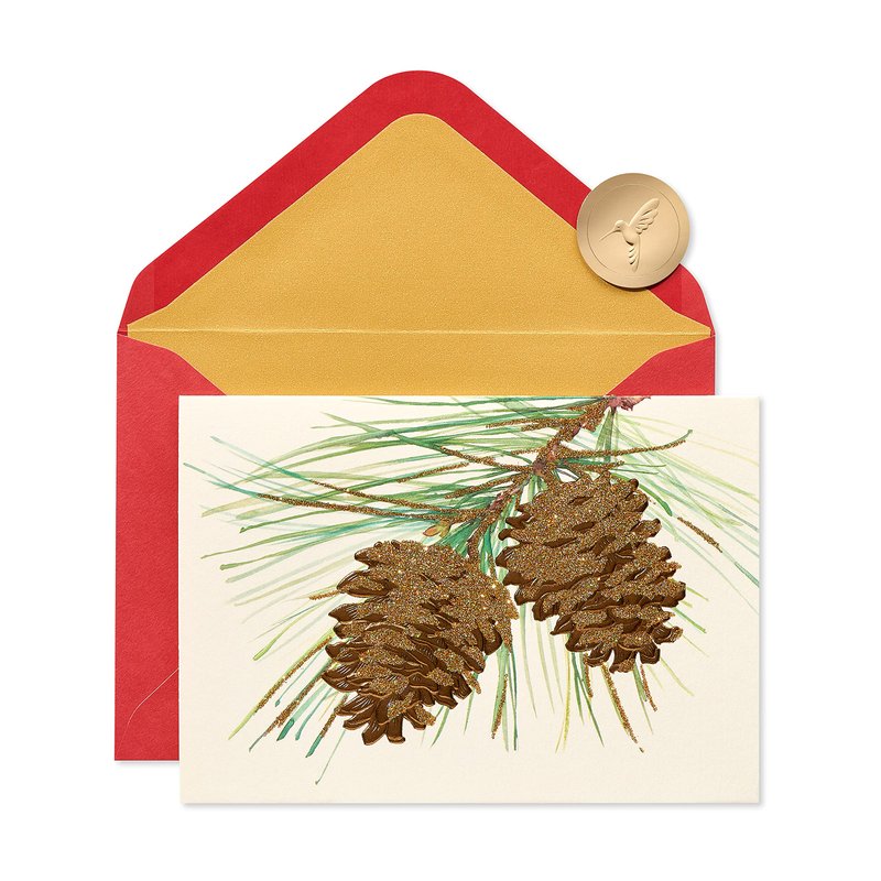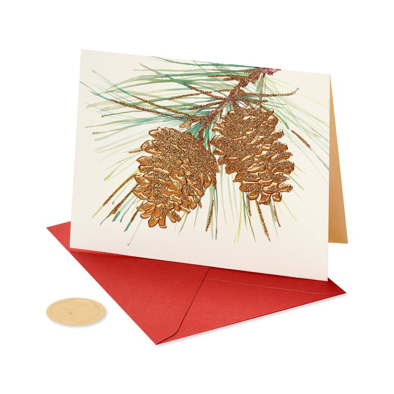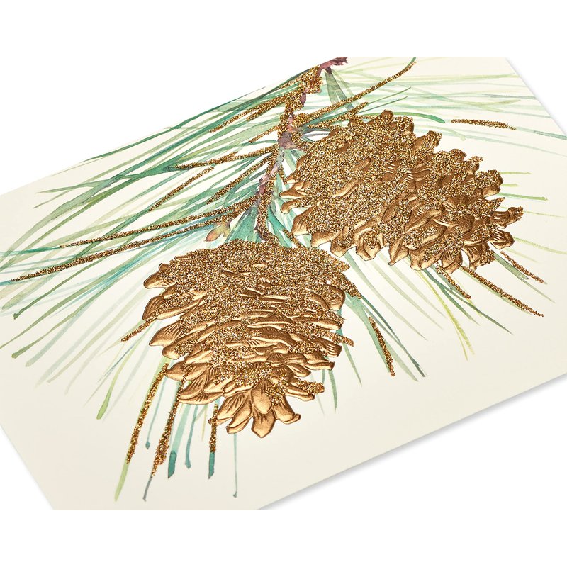 - These elegant Christmas cards by Papyrus features beautiful pine cones embellished with shimmery glitter, foil and embossing