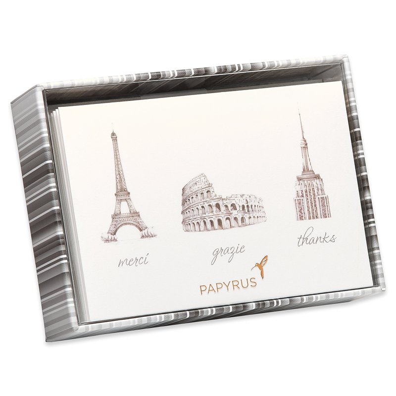Papyrus Thank You Cards with Envelopes, World Icons (14-Count)