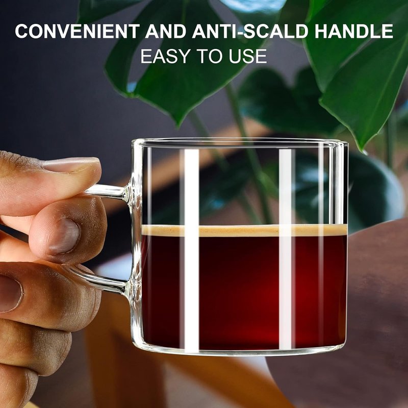 - 【Convenient and Anti-Scald Handle】 The espresso cups set of 4 feature convenient and anti-scalding handles. The glass handle is ergonomically designed for easy operation and prevents hand burns. Whether you're using this espresso cups set of 4 to hold espresso liquid from a French press or freshly heated milk froth, you won't burn your hands.