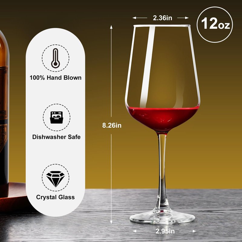 PARACITY Wine Glasses Set of 2, Hand Blown Wine Glasses, Clear Glass, Long Stem Glass for Red and White Wine, Christmas Gifts, 12oz Red Wine Glasses for Women, Men, Wedding and Birthday