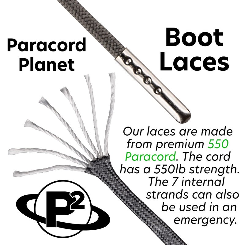 - PARACORD LACES: If you are looking for a better knot strength, higher fiber durability, and an overall longer lifespan than stock laces, Paracord Planet’s heavy-duty paracord boot laces are the right fit for you. Our work ready laces outperform standard laces and are perfect or high stress environments. Use these laces on construction sites, farms, commercial fishing boats, and for outdoor survival.