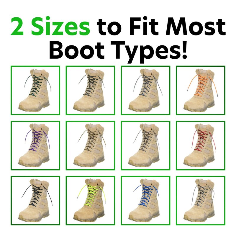 Paracord Planet’s 100% USA made 550 Paracord boot laces are made tough and built to last. Each set of laces are constructed with Milspec 550 Paracord and finished with durable high-quality metal aglets (tips). Our laces are reliable, strong, long-lasting, easy to tie in knots, and outperform many stock laces. Using these shoelaces is a great way to keep paracord with you in case of an emergency or survival situation. Paracord Planet's Laces will hold up in any environment you put them in, and last in the outdoors, no matter what weather condition they are in. These laces are resistant to sun, moisture, and weather making them versatile, reliable, and long lasting. With multiple color options in either length of 54 or 72 inches long and approximately 4mm in Diameter (.16 inches), you will be able to find the perfect fit for your hiking, work, or riding, boots and shoes.