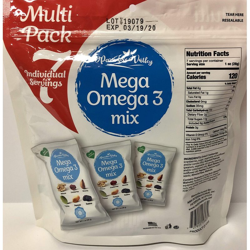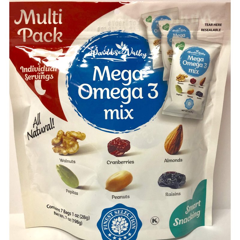 Walnuts. Cranberries. Almonds. Pepitas. Peanuts. Raisins. 7 Individual servings. All Natural! Finest selection. www.nuttynaturals.net. Resealable. Dispose of properly. Packaged in the USA.