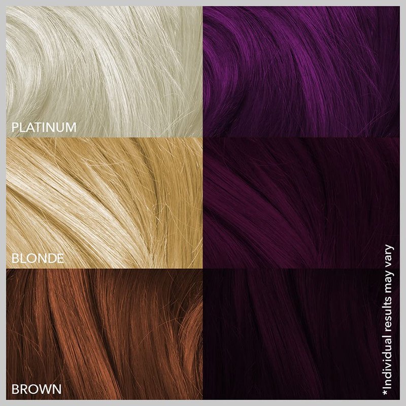 Inspired by amethyst, this rich jewel tone is a shimmery, multi-tonal purple that shows up brilliantly on hair pre-lightened to a level 8 or 9. On level 7 or 8, it is a subtle plum shade with stunning burgundy undertones. It fades into a trendy ashy lilac shade.