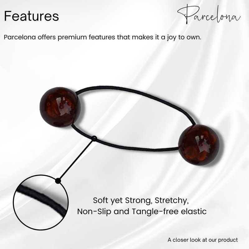 - The French design hair elastic is simple yet elegant for women's hair accessories. This hair tie is soft and flexible to hold the hair in place and gives you quick styling solutions. The size of bead is approx. 3/4 inch (2 cm).