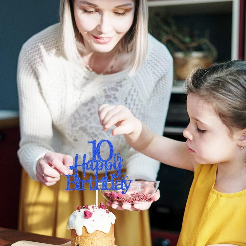 Pargleev Glittery 10th Cake Topper with Star Boys and Girls 10th Birthday Party Supplies, Ten Years Old Birthday Party Decorations Royal Blue