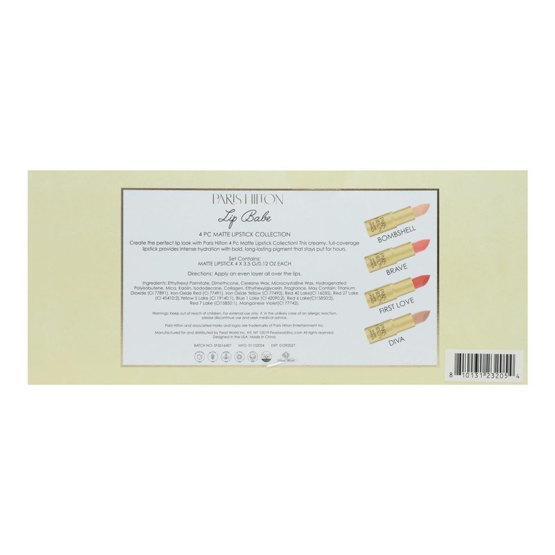 Paris Hilton Matte Lipstick Collection - Long Lasting Lipstick with Full Coverage, Lightweight Formula - Creamy, Hydrating and Velvety Smooth - 4 pcs