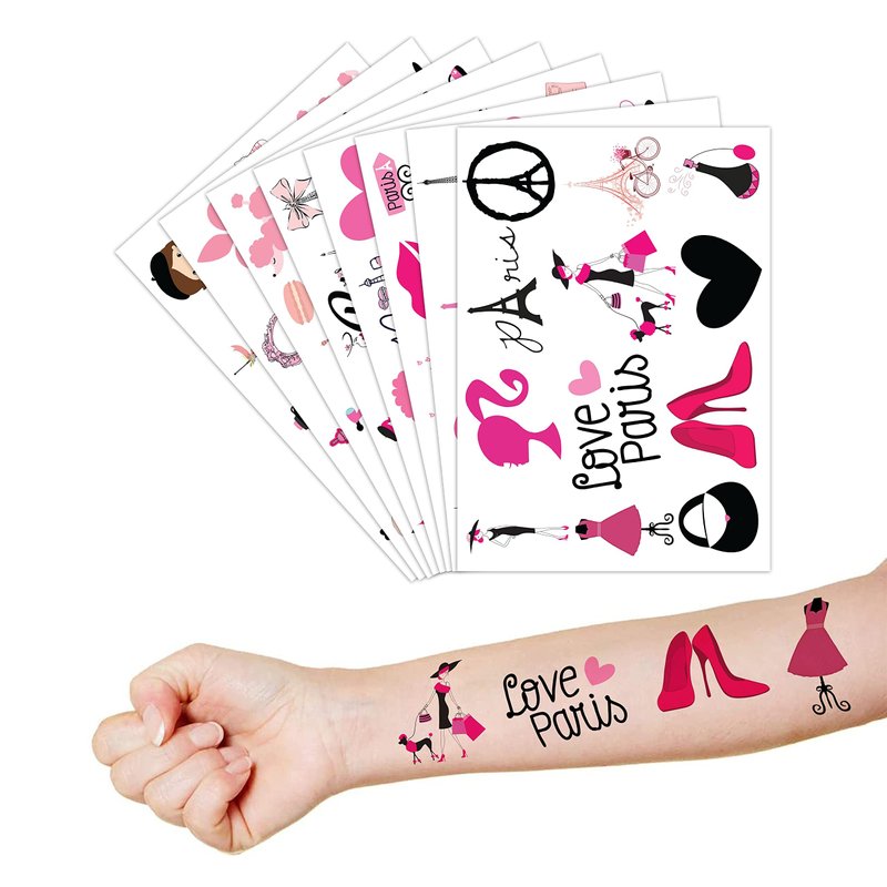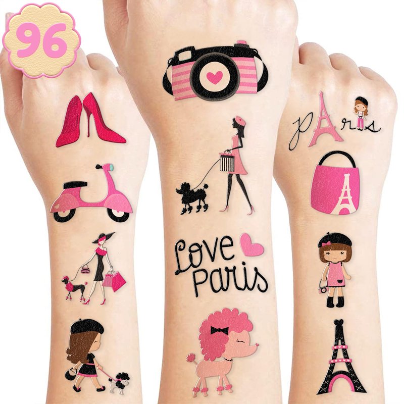 - 🎀【PERFECT TATTOOS FOR THEMED PARIS DECORATIONS】: Paris temporary tattoo stickers include 8 sheets in total. There are 96Pcs super cute tattoo differences. Perfect for giving out party favors and holiday theme small gifts. The size of each sheet is 6.1 * 3.1 inches. One size fits kids.