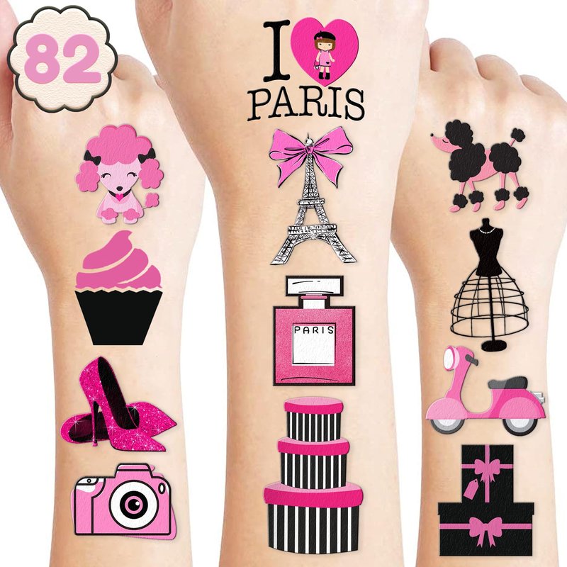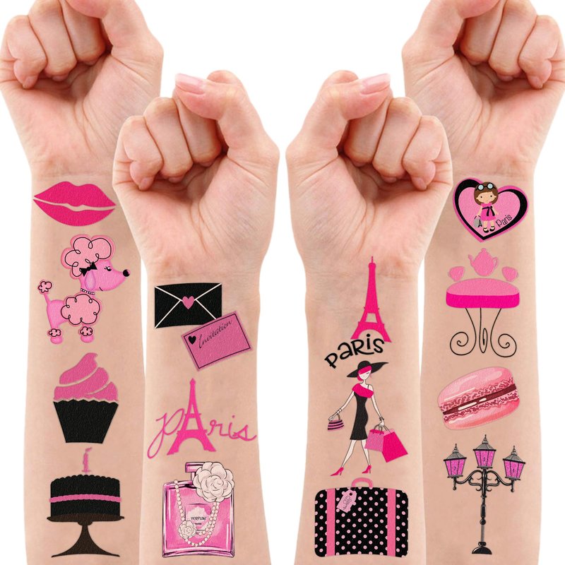 - Perfect Paris French France Eiffel Towers City Landscape Fashion Birthday Decorations: All the temporary tattoos are design with many themed. Fits any smooth part: face, hands, arms, shoulders, back, legs water bottle, cup,mug and other stuff and so on. Great fun for party favors, birthday gift, clubs, festivals or party supplies,etc. and can be used by children, kids, girls, boys, women, men.