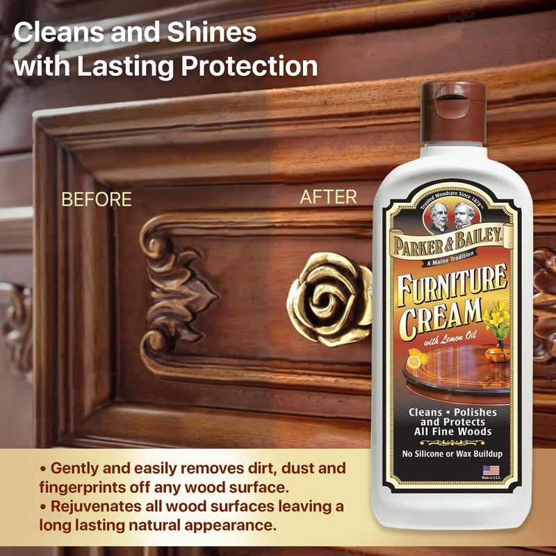 Parker & Bailey Furniture Cream - Multisurface Wood Cleaner and Polish Furniture Quick Shine Restorer Protector Kitchen Cabinets Surface Cleaner House Cleaning Supplies Home Improvement