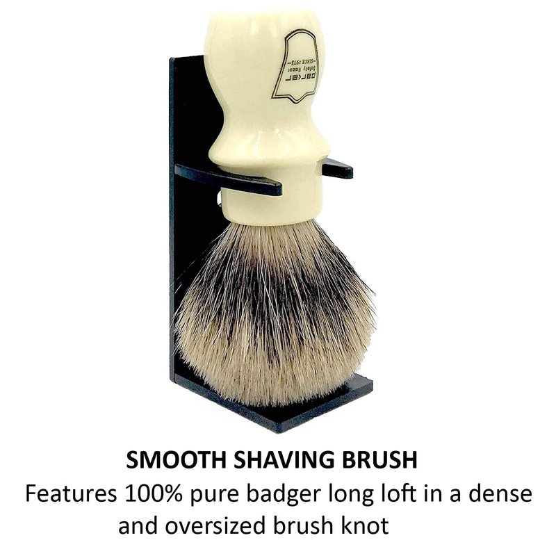 - BRUSH HAIR: This Parker shaving brush features 100% pure badger long loft in a dense and oversized brush knot. Only hand selected 3-band Pure Badger Bristle hair is used in this brush. It feels soft on the skin while prepping you for a close and comfortable shave