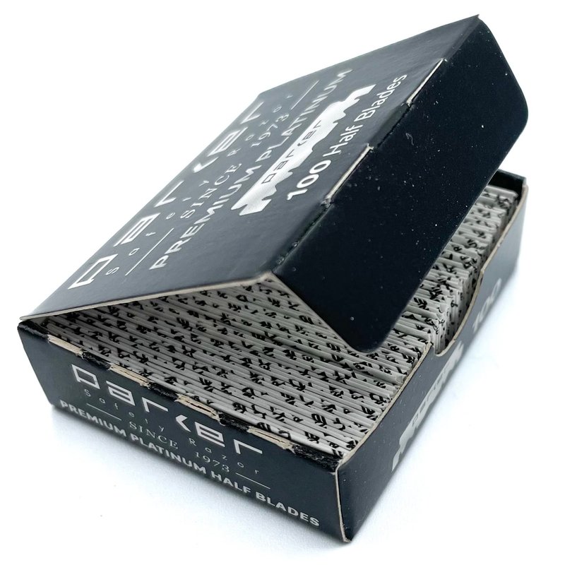 Parker Premium Platinum 1/2 Blades, 100 Count, For Professional Barber Razors, Shavette Style Razors and Disposable Blade Straight Razors that accept Half of a Double Edge Razor Blade