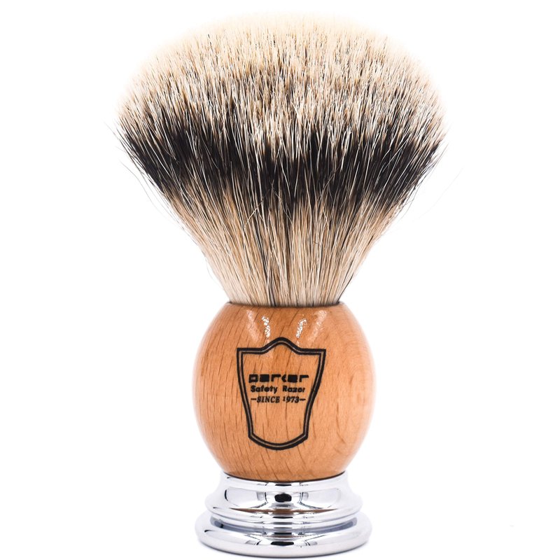 Parker Safety Razor 100% Silvertip Badger Bristle Shaving with Deluxe Olivewood & Chrome Handle - Brush Stand Included