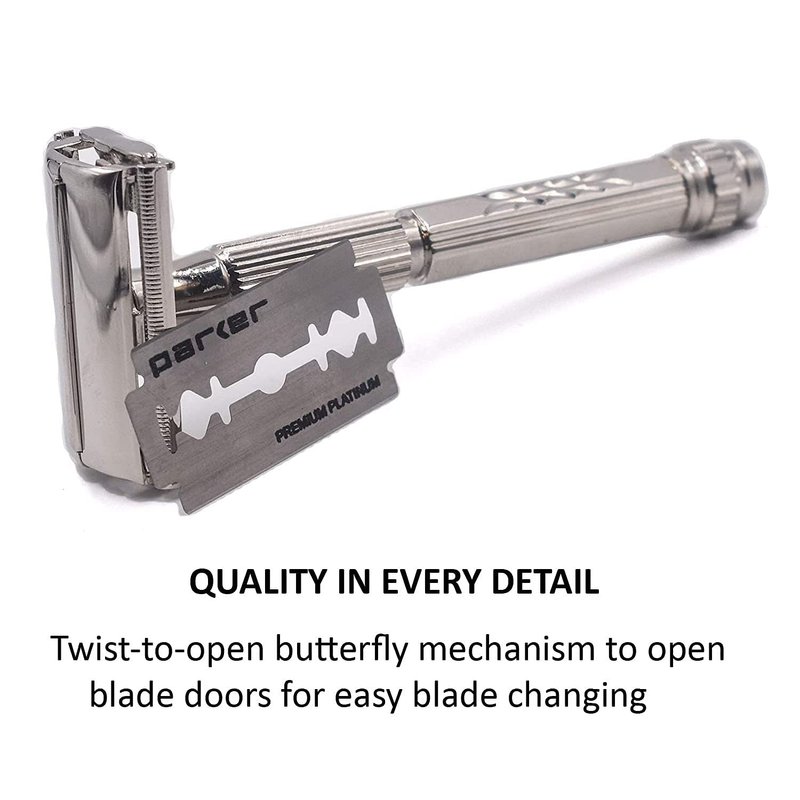 - 5 Parker Premium Platinum Double Edge Blades Included