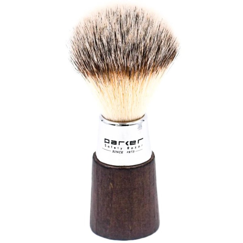 Parker Walnut & Chrome Handle Synthetic Shaving Brush with Stand – Vegan-Friendly, Fast-Drying, and Ideal for Sensitive Skin
