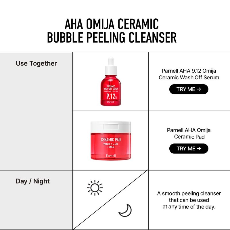 Parnell AHA Omija Ceramic Bubble Peeling Cleanser (180ml/6.08 fl.oz) | Gentle Exfoliating Foam Cleanser for Smooth, Radiant Skin | Korean Skin Care