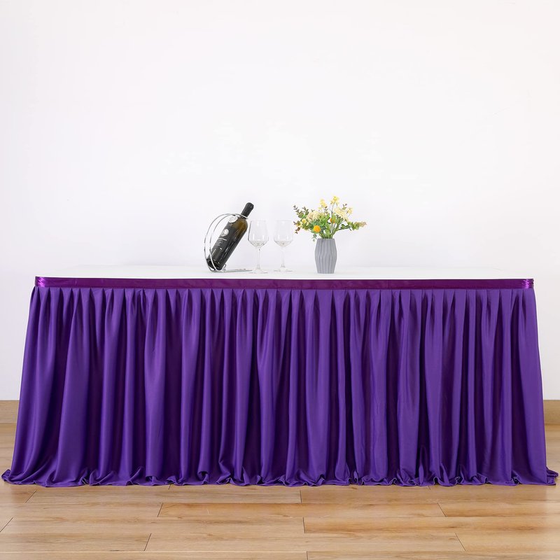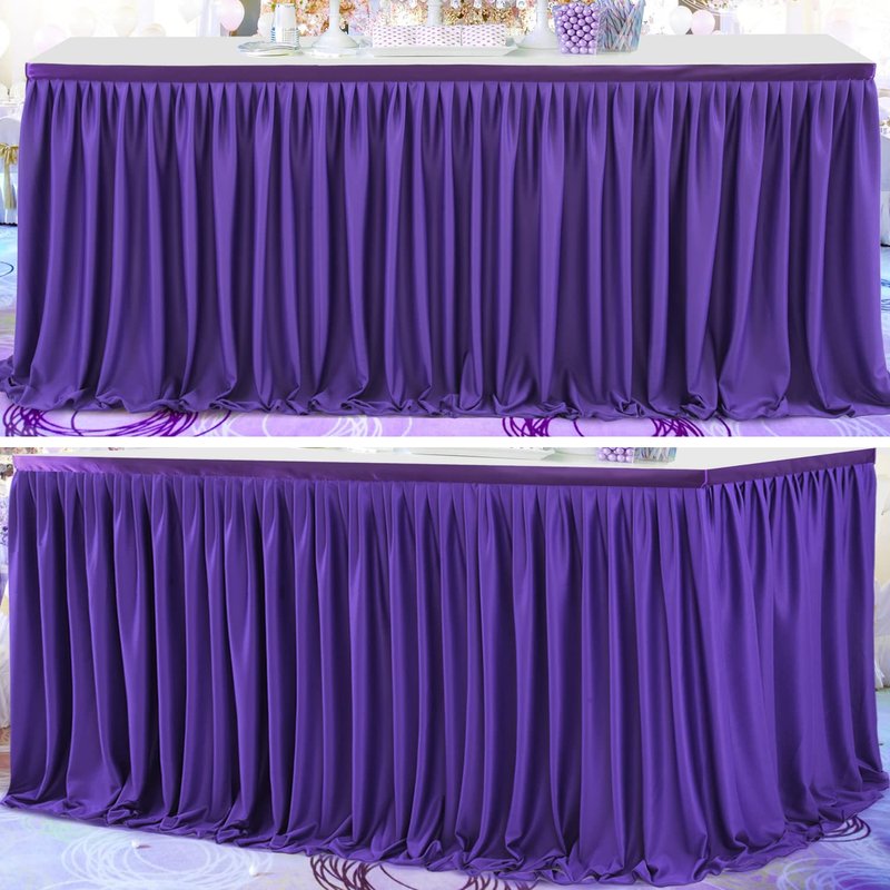 Partisky Purple Polyester Table Skirt for Rectangle Tables 6ft, Wrinkle Resistant Pleated Ruffle Table Cloth for Banquet Wedding Trade Baby Shower Display Gift Dining Table