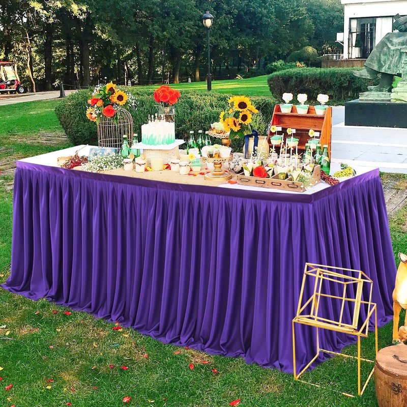 - Material: Purple Polyester table skirt made of 100% silk polyester available for superior softness and shine, Plain and simple table cloth used smooth sturdy and reusable