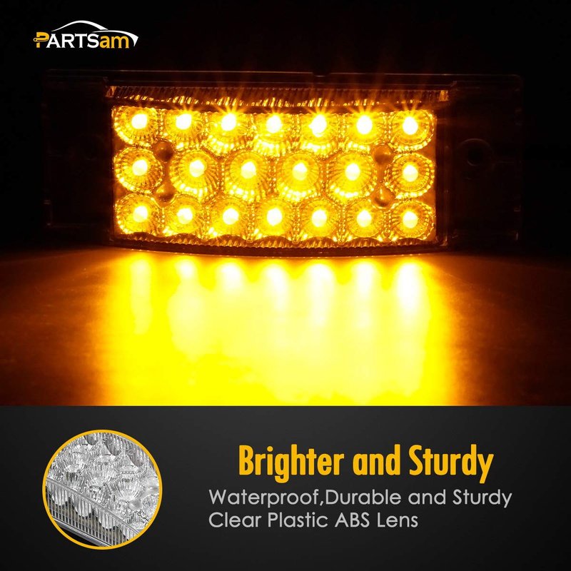Partsam 2pcs 6 inch Amber 20 LED Marker Lights Turn Signal Light, Sealed 6x2 Rectangular Rectangle Front Side Clearance lights for Semi Truck Trailer Camper RV Golf Cart, 3 Wires, 12V