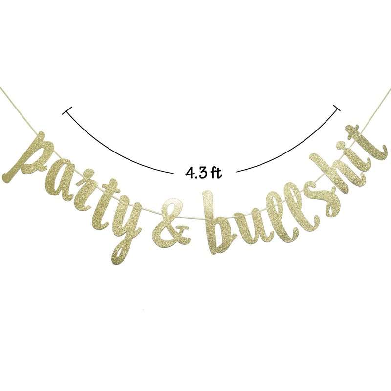 Party and Bullshit Gold Glitter Banner, Funny 21st, 25th, 30th Birthday Banner, 90's Party, Bachelorette Party, Office Party Decorations (Gold Glitter)