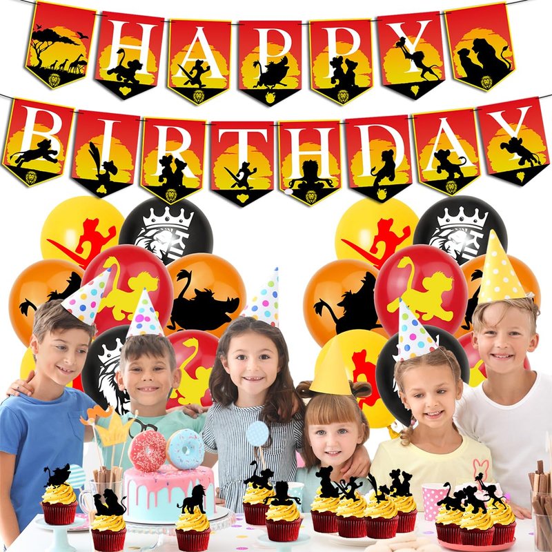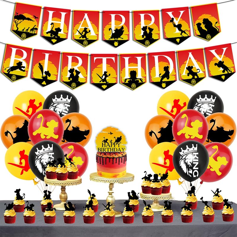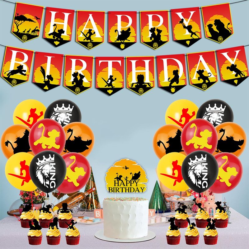 Party Decorations for Lion King, Lion Birthday Party Decorations including Birthday Banner, Cake Toppers, Balloons,for Lion King Happy Birthday Supplies
