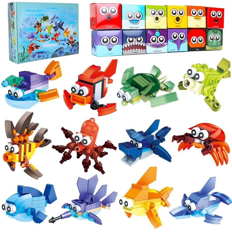 - ❤ Creative Stem Toys- Each 12 styles of carton ocean animals comes with different colors, can be set up in different shape ,kids can build their color shape cognition, exercise their creativity and imagination,develop their patience and hands-on ability ,Lots of fun .