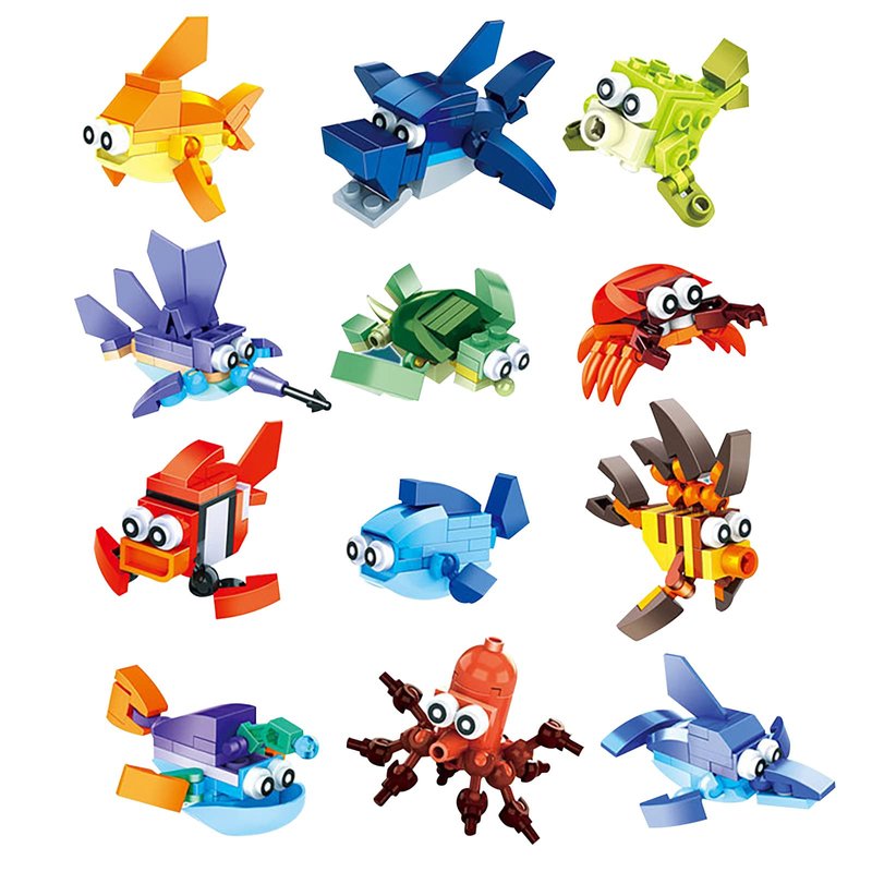 Party Favors for Kids Goodie Bags ,12PCS Mini Building Blocks Ocean Animal, Building Sets Stem Toys , Assorted Building Blocks Sets for Birthday Party Gift,Goodie Bags, Prize,Cake Topper