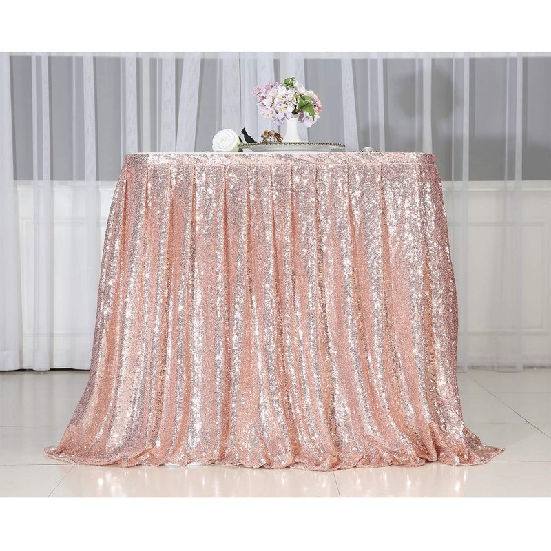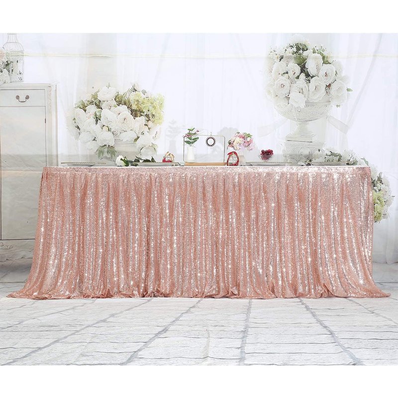 PartyDelight 6ft Rose Gold Sequin Table Skirt for Round/Rectangle/Square Table for Birthday Party Wedding Christmas.
