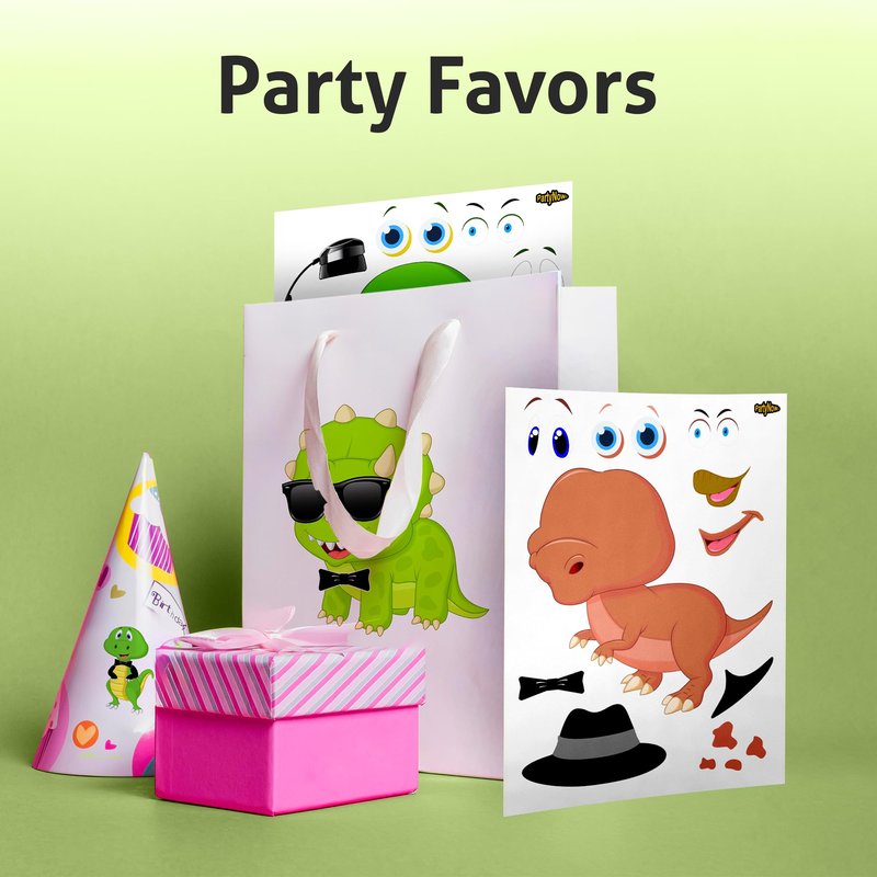 PartyNow Dinosaur Stickers | 24-Pack Make Your Own Stickers | Fun Dinosaur Sticker Sheets for Kids | DIY Kids Stickers with Changeable Faces | Cute Party Favors for Kids | Waterproof (3 Dinosaurs)