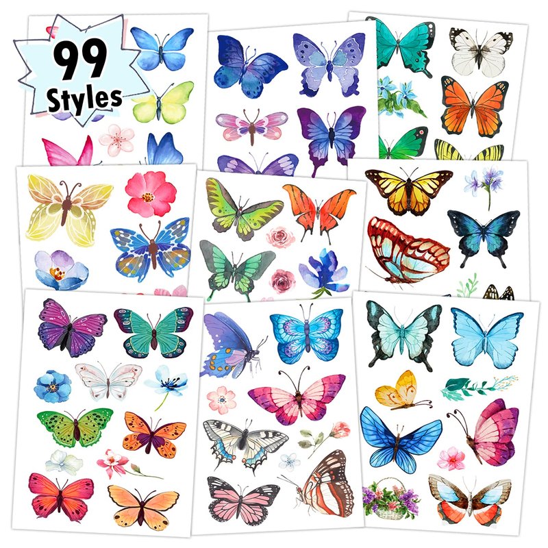 10 sheets (99 different styles) butterfly tattoos stickers for kids girls women.