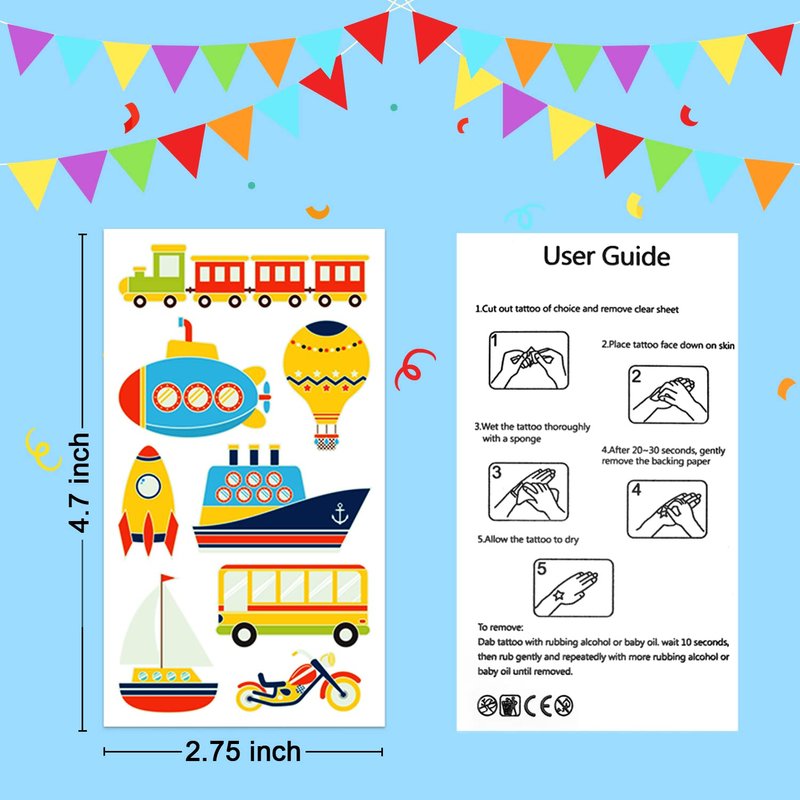 - 【Applicable Place】These tattoos stickers are suitable for cars/construction/tractor/transportation/truck party decorations, birthday party supplies, party favors, games, goodie bag stuffers and so on. Are you looking for the cute cars party accessories? Partywind temporary tattoos will be your good choice, which will add more fun of parties!