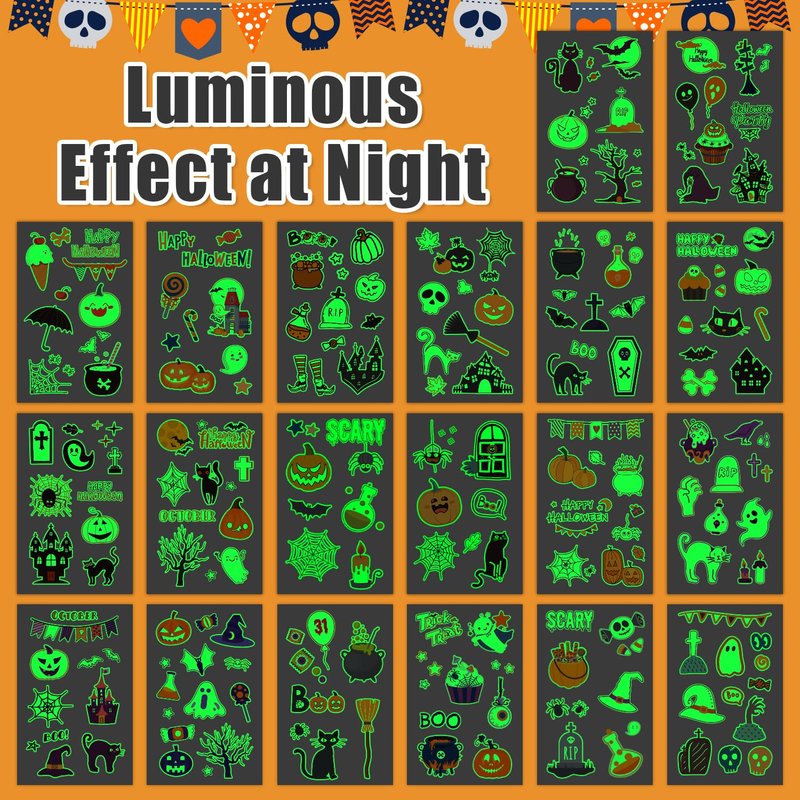 Partywind 195 Styles (20 Sheets) Glow Halloween Temporary Tattoos Party Decorations, Luminous Halloween Party Supplies for Kids Boys Girls, Halloween Treats Games for Party