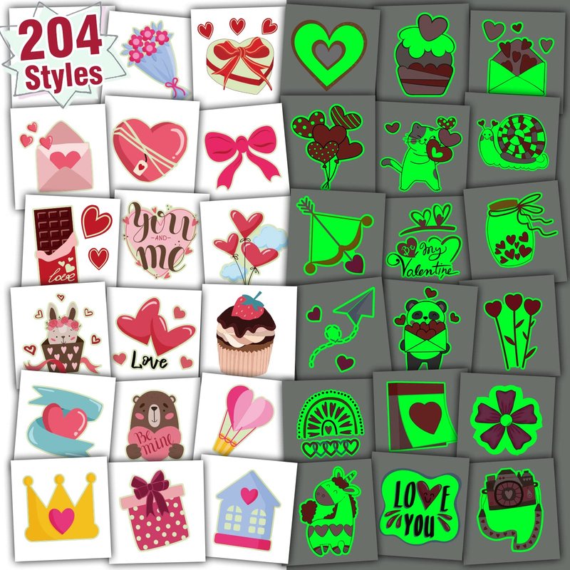- 【Glow and Long-lasting】Package contain 204 sheets luminous Valentines temp tattoos and no repeating patterns! Our temp tattoos undergo rigorous party testing, we guaranteed the fake tattoos will last all day or more.