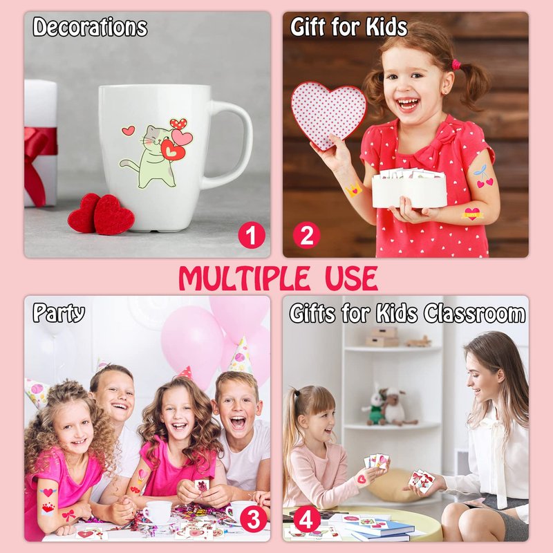 - 【Applicable Place】These tattoos stickers are perfect for kids to learn how to express their love and thanks! Meanwhile can be a good choice for Valentines party supplies, party favors, party decorations, Valentines day gifts for kids classroom, goodie bag fillers, games, toys, and so on. Suitable for boys, girls, baby, teens, children.