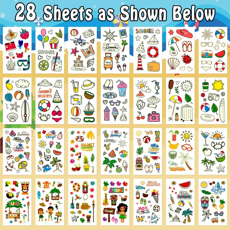 28 sheets (215 different styles) luminous Hawaiian kids tattoos stickers for boys girls.
